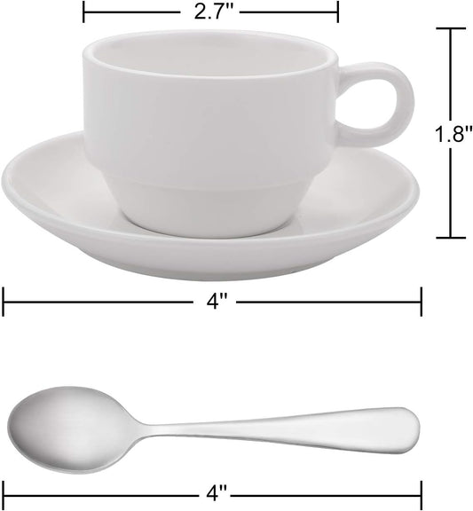 AOZITA 2.5oz Espresso Cups & Saucers with Spoons (12-Piece), White