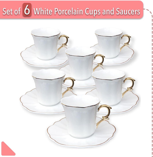 BTaT 2.4oz Espresso Cups with Saucers (Set of 6) — Gold Trim
