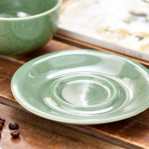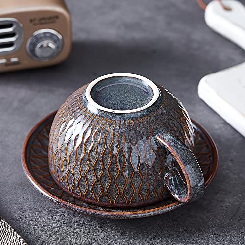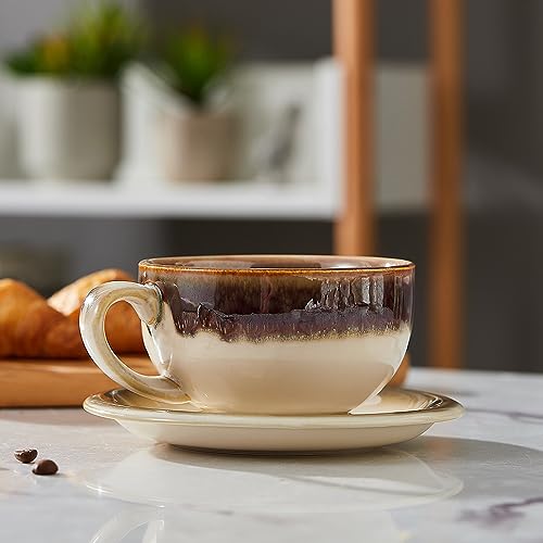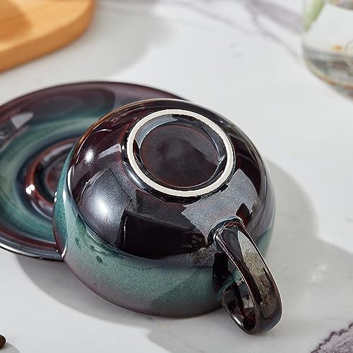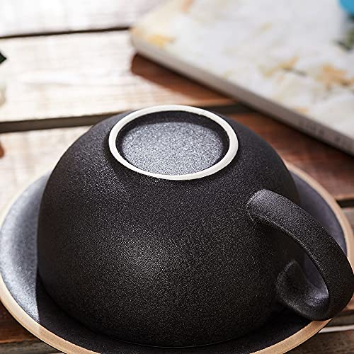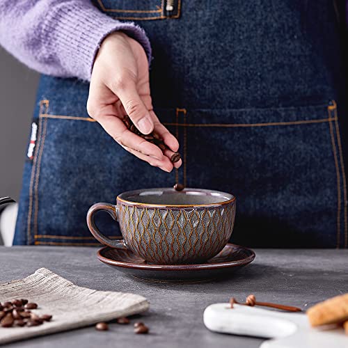 Coffeezone’s vintage 12 oz ceramic cup and saucer feature a professional cup shape for latte art, cappuccinos, and Americanos. The round bottom helps baristas pour clean designs, while the thick body keeps coffee warm and preserves flavor. Full capacity is 12 oz for latte art use (around 10 oz for normal drinking). Free replacement if the set arrives damaged.